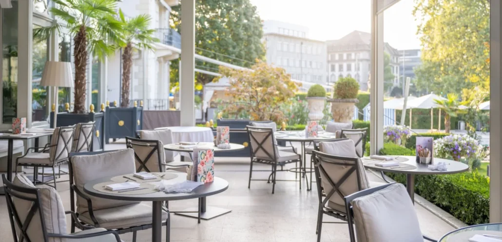 Lové dans le Grand Hôtel du Lac à Vevey, la brasserie chic « La Véranda » vous accueille dans un cadre d’exception où raffinement et élégance sont les maîtres mots. Tel un jardin d’hiver baigné de lumière, la salle vous invite à profiter d’un moment gourmet en toute quiétude.